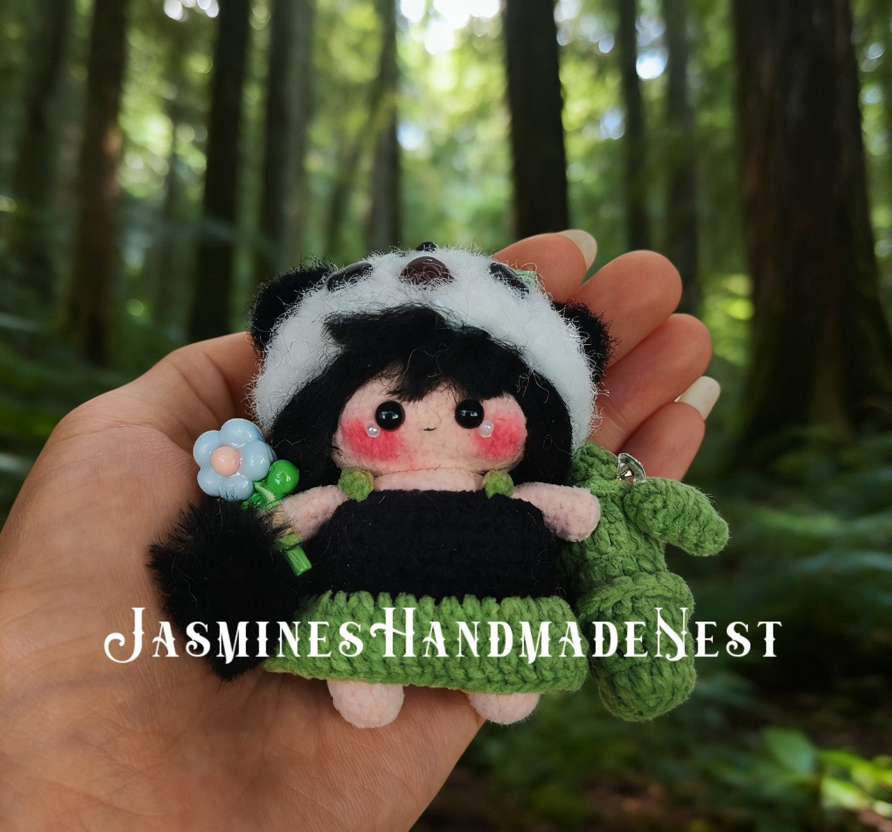 Mini Crochet Girl Doll – Handmade Micro Amigurumi Plush Toy, Tiny Tiger or Panda Doll, Cute Miniature Toy, Unique Handmade Collectible, Gift for Kids
